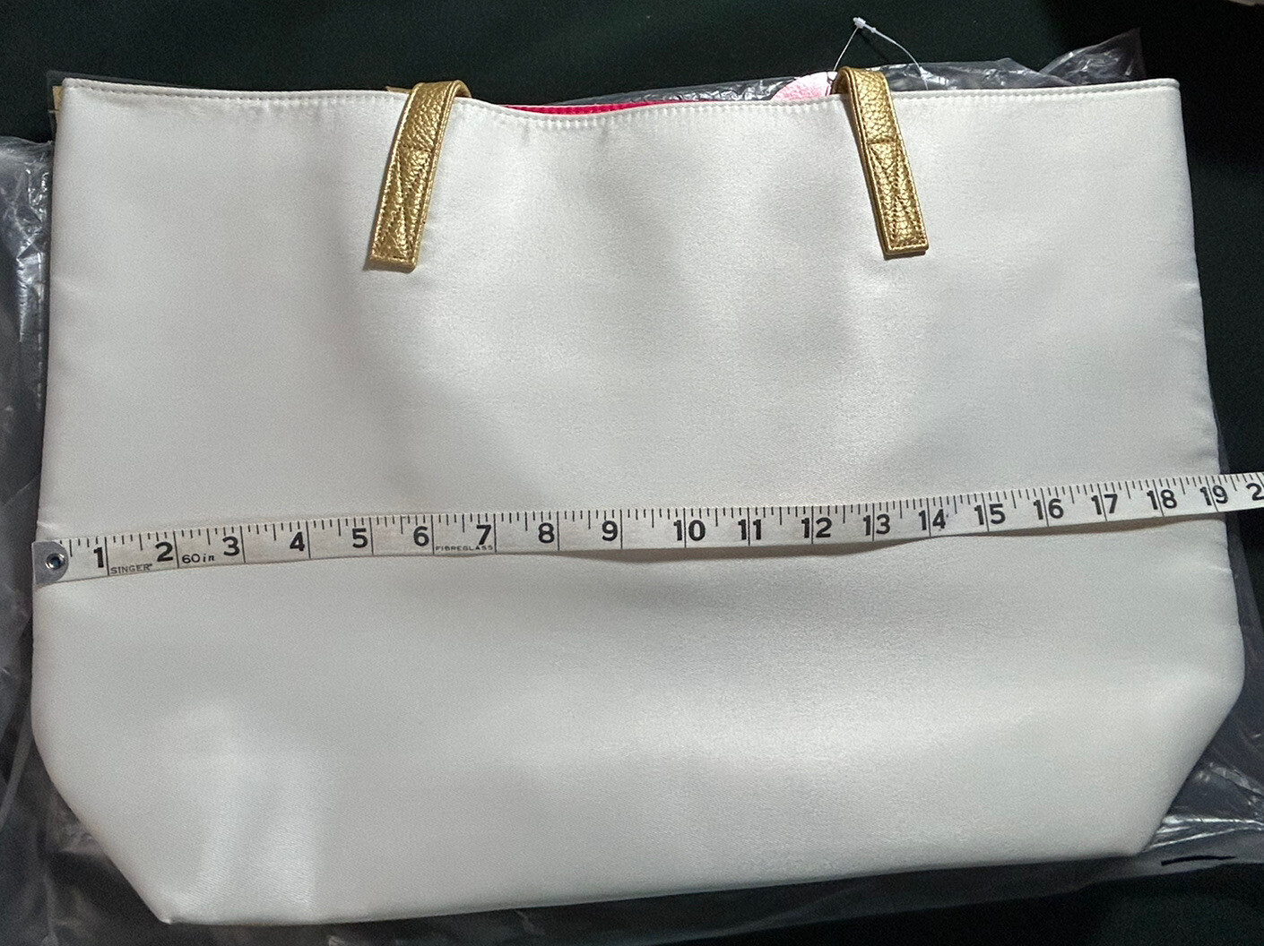 Mystic Divine Love Tote Bag From Sally Beauty NWT In Original Pkg 18”x12”x4.5” This adorable tote bag is in brand new condition and features a gold tassel as well as the heart on the front and an inside pocket. It is perfect for travel, shopping, beach, and everyday. Please see photos for details. Measurements are approximate. Smoke free home. I use recycled materials in shipping whenever possible and advisable. Please let me know if you have any questions.