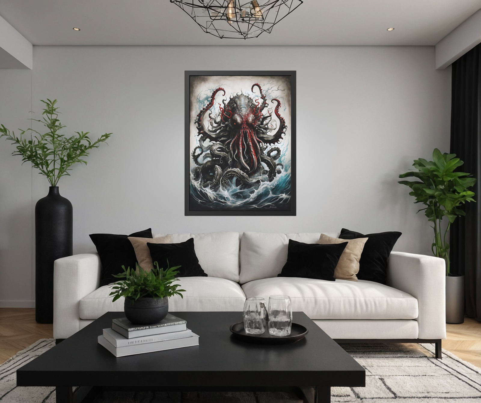 "The Mighty Kraken" β Mythical Nautical Illustration Unleash the legendary power of the deep with "The Mighty Kraken" , a stunning nautical illustration by Hypnotik Creations . This mythical masterpiece captures the terrifying grandeur of the Kraken, the infamous sea monster of Greek mythology . With its massive tentacles rising from the churning ocean waves , this octopus-like beast dominates the stormy waters , evoking the mystery and danger of the untamed sea . The dynamic composition and intricate detailing bring this ancient maritime legend to life , making it a perfect statement piece for any mythology, fantasy, or nautical art enthusiast . Printed in high dynamic range (HDR) on 200 gsm premium matte photo paper , this artwork delivers stunning depth, crisp details, and vivid colors . The use of Misaki UV Inks and state-of-the-art printing techniques ensures long-lasting brilliance and exceptional quality . Encased in a hand-crafted black wooden frame , made from durable pine wood with a semi-wide, smooth finish , this framed print offers both elegance and durability . A clear Perspex (Plexiglas) insert cover provides scratch and shatterproof protection , preserving the artworkβs pristine condition. A thin white outline enhances the versatility of the piece , making it ideal for both light and dark-colored walls . Ethically produced in the UK using globally sourced, eco-friendly, and recycled materials , "The Mighty Kraken" arrives ready to hang with a secure enclosed back and an included hanging kit . Perfect for fantasy lovers, maritime history enthusiasts, or those who appreciate bold, mythical art , this framed illustration will transform any space into an epic scene of oceanic lore and adventure . π Key Features π β Epic Mythical Nautical Artwork β Captures the legendary Kraken , a giant sea monster with massive tentacles , battling rough ocean waves in a cinematic stormy setting . β HDR Printing for Stunning Detail β Printed in high dynamic range (HDR) on 200 gsm matte photo paper , using Misaki UV Inks for rich colors, crisp details, and long-lasting vibrancy . β Hand-Crafted Black Wooden Frame β Made from durable pine wood , with a semi-wide smooth finish for a classic, sophisticated look . β Scratch & Shatterproof Protection β A clear Perspex (Plexiglas) insert cover ensures long-term durability and enhanced clarity . β Thin White Outline for Versatility β Designed to complement both light and dark-colored walls , ensuring seamless integration into any decor. β Eco-Friendly & Made in the UK β Created with sustainably sourced, recycled materials , making it a responsible and high-quality choice . β Arrives Ready to Hang β Features an enclosed back with a complete hanging kit , making installation quick and hassle-free . β Easy Maintenance β Simply wipe clean with a dry cloth to keep it looking flawless. Dive into the legend of the deep and let "The Mighty Kraken" bring a bold, mythical, and nautical presence to your space. ππβ