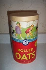 N MINT, VINTAGE IGA ROLLED OATS OR OATMEAL BOX WITH RECIPES