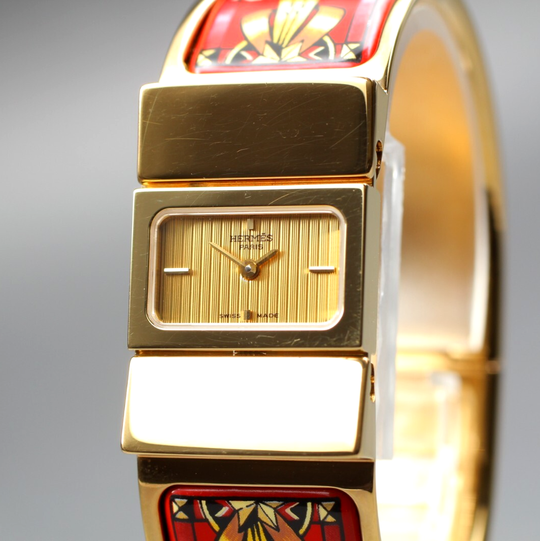 【N MINT】 Vintage HERMES LOQUET L01.201 Enamel Green Gold Tone Bangle Watch JAPAN W2504-04 Description ■ Total Condition TOP MINT Pre-owned, Almost new item MINT Pre-owned, Like new NEAR MINT Pre-owned, almost no signs of use EXCELLENT+5 Pre-owned, minimal signs of use EXCELLENT Pre-owned, heavy signs of use VERY GOOD poor appearance For Parts Repair is required. ■ Model Number L01.201 ■ Serial Number 1108329 ■ Appearance Beautiful condition. Slightly scuffed but no scratches on the windshield. Tiny scuffs from normal use. It shows signs of use. *Please check photos. ■ Case Size About 0.78 in (20 mm) ■ Max Belt Size About 6.10 in (155 mm) ■ Functional It works properly. The watch is currently running smoothly, but since it is a battery-powered watch, there is a possibility that it will stop during transportation. Please understand that we do not guarantee that this will happen. Please contact me first for return before you ship it back to me. The postage of the returned goods is a buyer burden. ■ Bundled Items There are no bundled items. All you can see on the picture will be included in a set of a package. Items not pictured are not included. Please refer to the pictures for more details. Please check the pictures and don't hesitate to ask any questions about the item ! Thank you. Payment We accept Pay Pal or Visa , Master Card and Discover . Payment is due within 5 days of the auction end. We will ship the item 3 business days after your payment clears. Shipping I send a product by DHL or Japan Post (EMS) . I attach the tracking number. Please bid it without worrying. Shipping is only available to the address registered in Paypal. Please note that any address not registered in Paypal is not acceptable to ship. Shipping is available from Monday to Friday. Weekends are not available because post office is closed. Returns Unconditional Return Policy Customer service and satisfaction are very important to us. I have an unconditional return policy if notified within 30 of the receipt of the item. All returned items must be the original condition. All return requests must be made within 30 days of the receipt of the item. Please contact me first for return before you ship it back to me. The postage of the returned goods is a buyer burden. International Buyers Please Note: Import duties, taxes, and charges are not included in the item price or shipping cost. These charges are the buyer's responsibility. Please check with your country's customs office to determine what these additional costs will be prior to bidding or buying.
