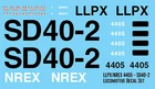 Decal Set for Sale: LLPX NREX SD40-2 #4405 Locomotive Decals Set includes Logos, lettering, patches, and labels to model one LLPX Locomotive. About Our Decals: Using the latest cutting edge technology available our waterslide model decals are designed to replicate prototype rolling stock accurately down to the smallest detail. Our process allows for a 100% Color Match to real-world paint schemes in solid, opaque spot colors unlike ALPS printed decals; as well as Fades and Gradients previously unavailable with Screen Printed decals. Using High Quality transfer paper allows us to provide a durable yet easy to work with decal which responds well to available setting solutions and allows for our decals to settle correctly over uneven surfaces. This product is print on demand. Please allow 3-5 business days for your item to be printed and shipped. About the Seller CMR Products strives to produce high quality products at an affordable price. At CMR Products we give you access to NetzlofDesign waterslide decal for railroads, vehicles and weathering, Puttman Detail Parts for Locomotives and Scenery, Easy Streets roadway system, Puttman Locomotive Works Resin and 3d Shells, TabTec Laser Products (T-TRAK Modules and Desktop Organizers) and much more. We are constantly looking for new quality products to offer to our customers. Have a custom project that needs completed, see something we should be offering, feel free to contact us and we will get back with you.