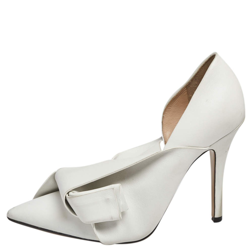 Our eBay Store About Us Contact Us Add to Favorite Sellers N21 White Leather Knot Pointed Toe Pumps Size 37 Don an uber-chic look by flaunting this pair of exquisite Nº21 pumps. Sturdy and durable, these pumps crafted out of leather lend a sophisticated vibe to your look. Be it formal wear or casual wear, this pair of white pumps will cater to all your fashion needs. Product Details Brand N21 Color White Includes Original Dustbag Size 37 Outsole Length 21 cm Outsole Width 8 cm Certified by The Luxury Closet This item has gone through a detailed authentication process overseen by our experts. We offer a lifetime guarantee of authenticity on all our items. How We Check The in-house team of experts at The Luxury Closet is highly trained to verify the authenticity and the condition of the luxury products. They ensure that only 100% authentic items are put on sale.The evaluation process is unique with its own mix of assessment criteria and differs according to the category. Each item is evaluated based on the following combination of hallmarks, hardware, stitching, symmetry, material, craftsmanship, stamping, codes, hologram stickers, and packaging. Our authenticators also check if the items have been modified or amended (e.g., aftermarket diamonds, replaced batteries, repaired bags, etc.) International Buyers Import duties, taxes and charges are not included in the item price. These charges are the buyers responsibility. Please check with your country’s customs office to determine what these additional cost will be prior to buying.