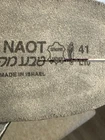 The NAOT Women's Black Leather Slip-On Low Wedge Sandal in Size 10 is a stylish and comfortable option for women who are looking for a gladiator-style sandal. The slip-on closure makes it easy to wear, while the low wedge heel provides stability and support. Made with high-quality leather, this sandal is durable and designed for all-day wear. Its solid black color and logo accents add a touch of sophistication to any outfit, making it a versatile addition to any woman's shoe collection. Preowned Good Condition