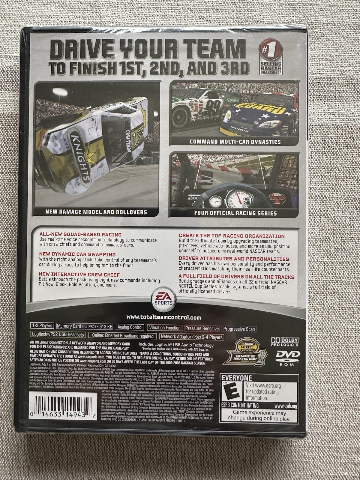 NASCAR enthusiasts to take to the starting line in this release for PlayStation 2 and Xbox. Promoted as the first console driving game to utilize voice recognition technology, NASCAR 06: Total Team Control lets players communicate with computer-controlled crew chiefs and team members, using team work to execute blocking maneuvers and maintain track position. Facing a long line of taillights may seem a bit daunting, but by using the right analog stick, players may be able to retake the lead by controlling teammates' cars to fend off rivals.