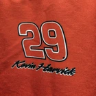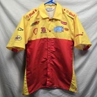 The product is a men's medium NASCAR Kevin Harvick Shell Racing pit crew polo shirt uniform from the team Richard Childress Racing. The shirt is designed in the team colors of yellow and red, representing the auto racing sport. It features the driver's name, Kevin Harvick, and is a must-have for fans of the NASCAR league and auto racing enthusiasts. This shirt is a unique collectible item that allows fans to show support for their favorite driver and team in a stylish and comfortable way.