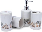 NAT & Jules Chic Modern Rounded 4.5 inch Ceramic Bathroom Accessories Grey Product Details Number of Pieces: 4 Finish Type: Polished Manufacturer: Nat and Jules Product Dimensions: 9 x 7 x 9 inches Item Weight: 3.06 pounds Item model number: 1009110023 Fabric Type: Ceramic Finish types: Polished Batteries required: No Material: Ceramic Color: Grey Brand: NAT AND JULES Style: Lodge Included Components: Dispenser, Toothbrush Holder Ceramic MATCHING SET OF 4: Includes a soap dispenser, a toothbrush holder with 3 holes, an open canister, and a storage canister with a lid to add a stylized modern flair to your bathroom or kitchen sink. DURABLE CERAMIC STONEWARE: With a lodge & cabin themed decal on cream finish; Hand soap dispenser features a silver tone accent pump; Essential to keep your sink countertop organized; Handwash only. DIMENSIONS: Each piece measures approximately 4.5 inches tall and approximately 3 inches in diameter; Toothbrush holder includes 2 round and 1 larger hole, for organizing multiple toothbrushes FUNCTIONAL & ATTRACTIVE: Beautiful water colored bear, deer, fox, squirrel & raccoon to match any décor for that woodsy, rustic space; Great addition to your home or office bath and kitchen counter. GIFTABLE: Perfect gift for a housewarming, bridal shower, graduation or as a self purchase; With so many purposes, create a functional space saver using these great multipurpose storage essentials.