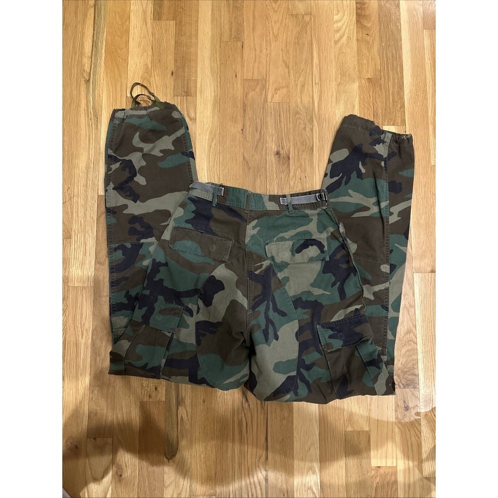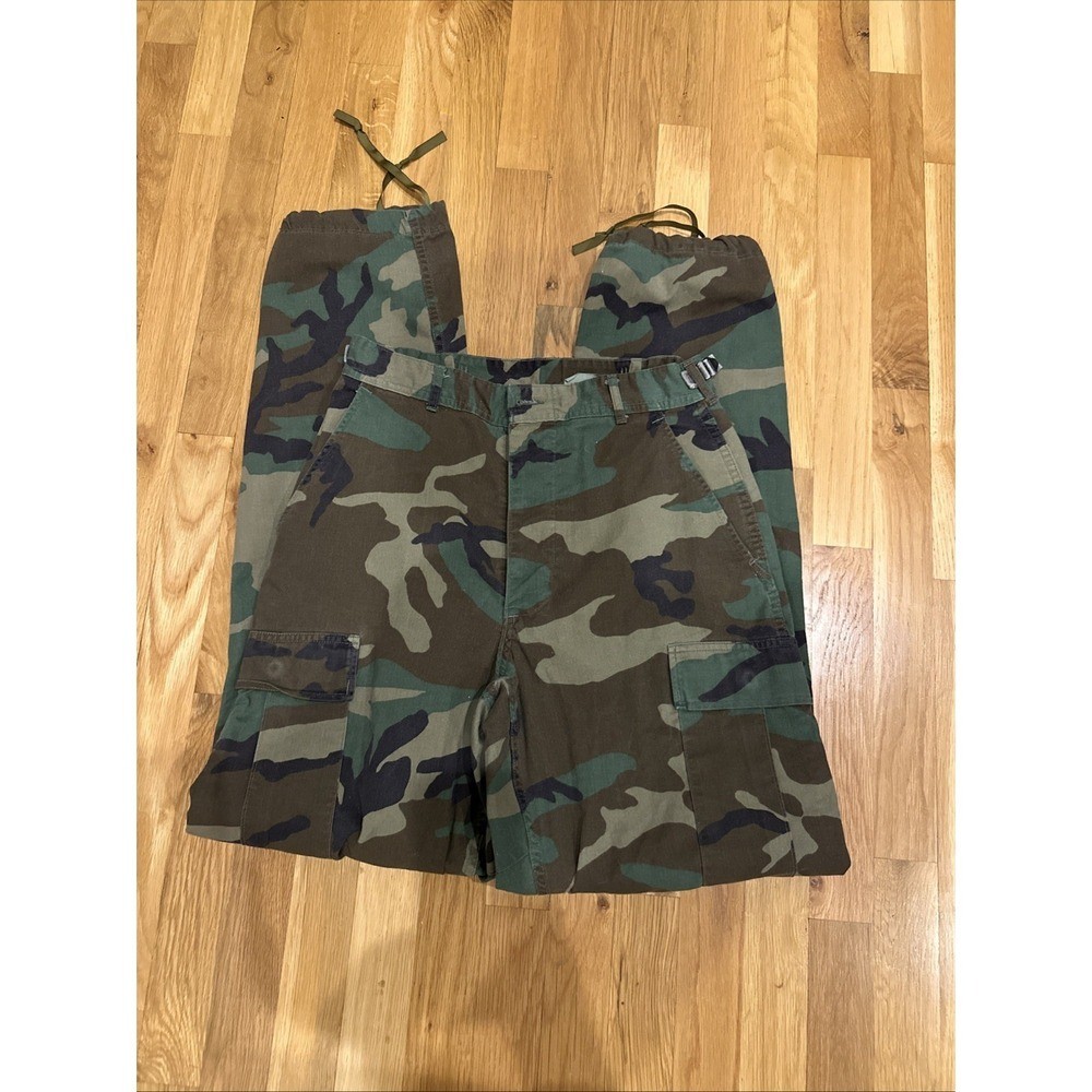 The NATO Gov Issue Cargo Pants for men in green and beige camouflage are a stylish and functional addition to any wardrobe. These vintage-inspired pants feature a tie closure, button accents, and a regular fit for added comfort. With a waist size of 35 inches and an inseam of 35 inches, these cargo pants are designed for a size Large Extra Long, making them perfect for a range of sizes. The army-themed styling adds a rugged touch to these practical and versatile pants from the trusted brand Cargo. Missing a button