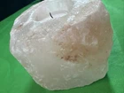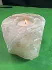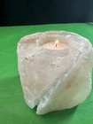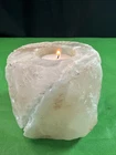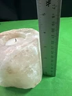 This natural pink rose quartz crystal geode votive candle holder from Brazil is 3.5 inches in size. It features a unique geode shape and is perfect for displaying candles or as a decorative piece.