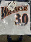 This is a Mitchell & Ness NBA Authentic Stephen Curry jersey for the Golden State Warriors from 2009. It is officially licensed by the National Basketball Association (NBA) and is in size L. The jersey is white in color and is designed for men who are fans of Stephen Curry and the Golden State Warriors.