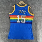 Show off your love for the Denver Nuggets with this limited edition NBA jersey featuring star player Nikola Jokic. This throwback 1980's jersey is a must-have for any true basketball fan and is perfect for wearing during the regular season. Made for men in size large and in the team's iconic blue color, this replica jersey is a great addition to any sports memorabilia collection. Get yours now and represent the Nuggets in style! NEW
