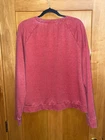 Show your love for the Chicago Bulls with this red NBA by Sideline Apparel women's sweatshirt in size XL. It's perfect for regular season games or everyday wear. The comfortable sweatshirt features the team's logo and is made from high-quality materials. Whether you're a fan of the sport or just looking for a stylish addition to your wardrobe, this sweatshirt is a must-have. The product is designed for women and is ideal for those who want to show their support for the Chicago Bulls. Great condition Pit to pit: 26 inches Length: 26 inches Sleeves: 32 inches 59% cotton 47% polyester Smoke-free home