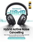 【Hybrid Active Noise Cancelation】Equipped with industry-leading noise-canceling technology and a hybrid ANC algorithm, it effectively isolates up to 95% of ambient noise across a wide frequency range. Whether it's the roar of airplane engines, the hustle and bustle of the subway, or other noisy environments, simply press the ANC button to instantly create your exclusive quiet space. Immerse yourself fully in your own world, free from external noise interference. 【Transparent Mode】Hear your surroundings clearly while enjoying music, perfect for busy streets or conversations. Stay aware without removing your headphones, keeping you connected to the world while still immersed in great sound. 【80H Battery Life & Fast Charging】With ANC off, these headphones offer up to 80 hours of playback. Just 5 minutes of charging gives you 6 hours of use. A full charge lets you listen to 1,200 songs, watch 40 movies, or attend 60 meetings. For extended use, switch to wired mode. Perfect for long trips. (Includes Type-C charging cable and 3.5mm audio cable.) 【Superior Clear ENC Noise-Cancelling Calls】Equipped with 5 high-sensitivity microphones and advanced ENC technology, these headphones ensure clear calls even in noisy environments. The AI noise reduction algorithm delivers a face-to-face call experience, enabling high-quality communication anytime, anywhere. 【Ultra Comfort & Adjustable Design】The noise cancelling headphones feature ultra-soft protein leather ear cups for exceptional comfort. Their adjustable design ensures a perfect fit and ergonomic support, preventing discomfort even during extended wear. Lightweight and foldable, they’re easy to carry, making them ideal for work, commuting, or travel—offering a seamless audio experience wherever you go. 【APP EQ Customization】With the app, you can easily customize EQ settings to suit your preferences, adjusting treble, bass, or keeping a balanced sound. Plus, switch between three modes—Noise Cancellation, Normal, and Transparent—to match your environment, ensuring a superior audio experience anytime.
