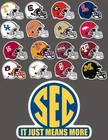 Stickers are waterproof with high quality image Each helmet measures 2 “ X 2 1/2” SEC Logo sticker measures 4” X 5”