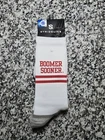 Show your team spirit with these NCAA Oklahoma Sooners socks. These white athletic crew socks are made for football fans who want to show their support. The socks feature the "OK Boomer" pattern and are size small-medium, perfect for men's size 8-12M. Made by Rock 'Em, these socks are designed to provide comfort and performance on the field. The socks are made in China and are of high quality. Don't miss out on the chance to show your team spirit with these college football socks.