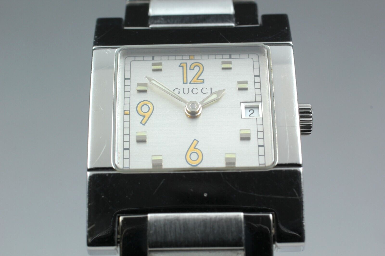 【NEAR MINT】 Gucci 7700L Quartz Square Silver White Dial Women's Watch From JAPAN W2403-39 Description ■ Total Condition TOP MINT Pre-owned, Almost new item MINT Pre-owned, Like new NEAR MINT Pre-owned, almost no signs of use EXCELLENT+5 Pre-owned, minimal signs of use EXCELLENT Pre-owned, heavy signs of use VERY GOOD poor appearance For Parts Repair is required. ■ Model Number 7700L ■ Serial Number 0016555 ■ Appearance Beautiful condition. Tiny scuffs from normal use. It shows signs of use. *Please check photos. ■ Case Size About 0.94 in (24 mm) ■ Max Belt Size About 5.90 in (150 mm) ■ Functional It works properly. Quick set (Date) : work well. The watch is currently running smoothly, but since it is a battery-powered watch, there is a possibility that it will stop during transportation. Please understand that we do not guarantee that this will happen. Please contact me first for return before you ship it back to me. The postage of the returned goods is a buyer burden. ■ Bundled Items There are no bundled items. All you can see on the picture will be included in a set of a package. Items not pictured are not included. Please refer to the pictures for more details. Please check the pictures and don't hesitate to ask any questions about the item ! Thank you. Payment We accept Pay Pal or Visa , Master Card and Discover . Payment is due within 5 days of the auction end. We will ship the item 3 business days after your payment clears. Shipping I send a product by DHL or Japan Post (EMS) . I attach the tracking number. Please bid it without worrying. Shipping is only available to the address registered in Paypal. Please note that any address not registered in Paypal is not acceptable to ship. Shipping is available from Monday to Friday. Weekends are not available because post office is closed. Returns Unconditional Return Policy Customer service and satisfaction are very important to us. I have an unconditional return policy if notified within 30 of the receipt of the item. All returned items must be the original condition. All return requests must be made within 30 days of the receipt of the item. Please contact me first for return before you ship it back to me. The postage of the returned goods is a buyer burden. International Buyers Please Note: Import duties, taxes, and charges are not included in the item price or shipping cost. These charges are the buyer's responsibility. Please check with your country's customs office to determine what these additional costs will be prior to bidding or buying.