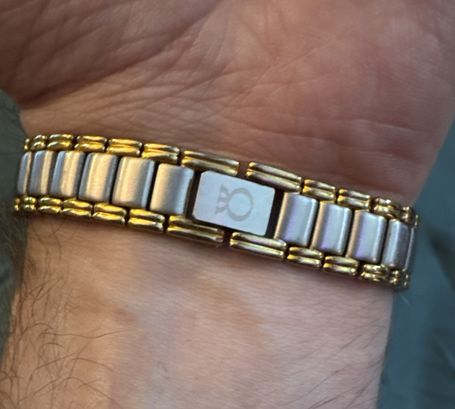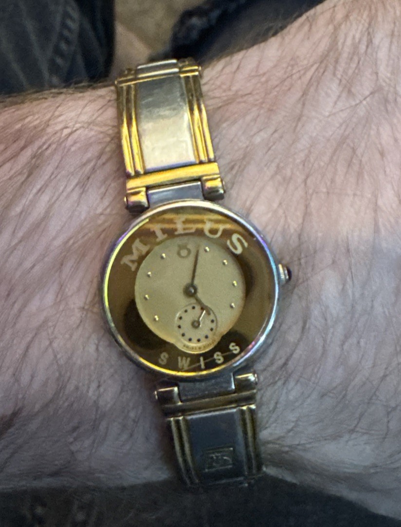 The Milus Luxury Unisex Wristwatch is a stunning timepiece that exudes elegance and sophistication. Featuring a mirrored 24k gold plated bezel, 18k gold accents, and a 12-hour dial, this vintage watch from sometime in the 1960s-1990s is a true Swiss masterpiece. With 11 jewels, a Swiss made quartz movement, and water resistance up to 30 meters, this luxurious watch is perfect for both men and women who appreciate fine craftsmanship and timeless design. The bracelet band is two-tone stainless steel, and the case is solid stainless steel with a brushed finish, making it a versatile and stylish accessory for any outfit. Add this exceptionally rare and sexy watch to your wardrobe or collection today, may never see one again! Works perfectly and keeps time well. Look over the pictures and ask any questions! What you see is what you will get! Have never found or seen another one like it!!