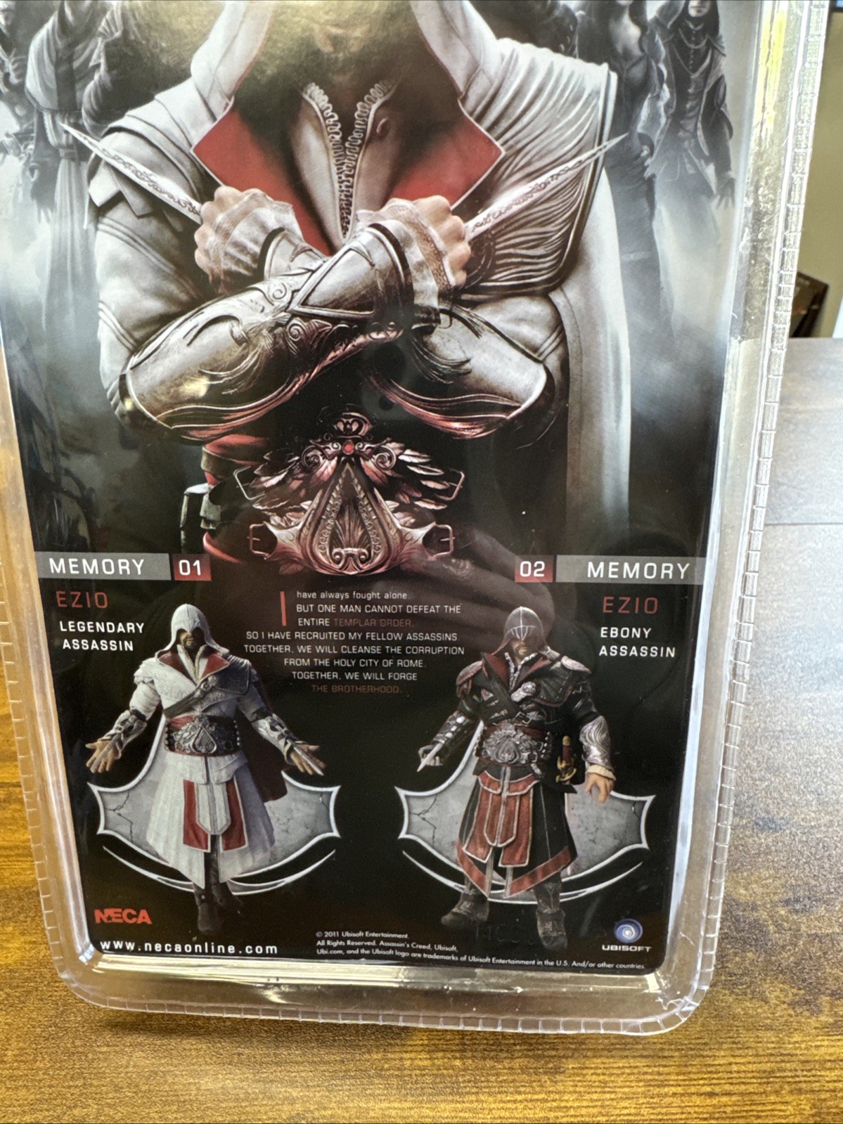 The NECA Assassin's Creed Brotherhood EZIO Legendary Assassin Black action figure is a collectible toy based on the popular video game franchise. This 7-inch figure features Ezio, a legendary assassin, in black attire made of ABS plastic and plastic materials. Manufactured in 2011 in the United States, this original licensed reproduction is perfect for fans of Assassin's Creed looking to add a piece of their favorite character to their collection. With intricate details and a focus on the video game theme, this figure is a must-have for any enthusiast.