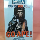 This Gorilla Soldier figure is an absolute must-have for Planet of the Apes fans! The detailing is incredible, from the textured fur to the realistic facial expressions. With multiple articulation points, you can pose it in dynamic action stances, and the included accessories like the machine gun and backpack add even more play or display options. The interchangeable head is a cool bonus, letting you switch up the look. Sturdy PVC construction means it’ll last, whether you're a collector or just love posing figures. NECA nailed it with this one—highly recommended!
