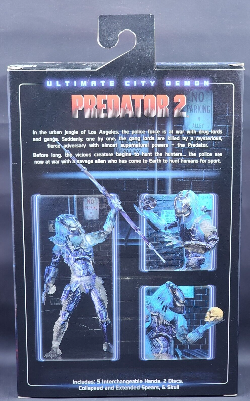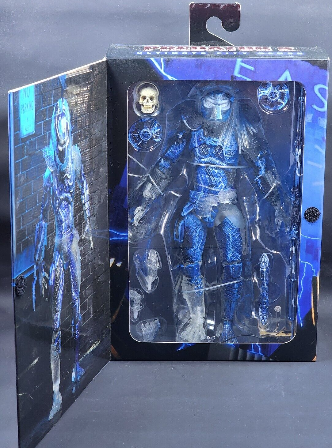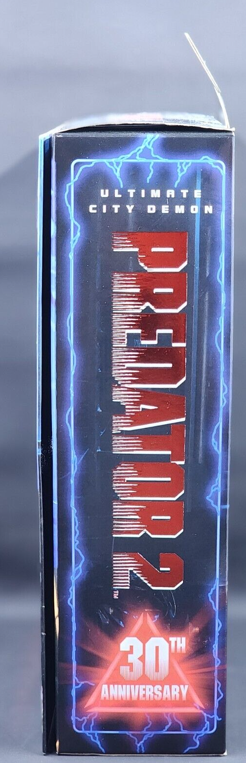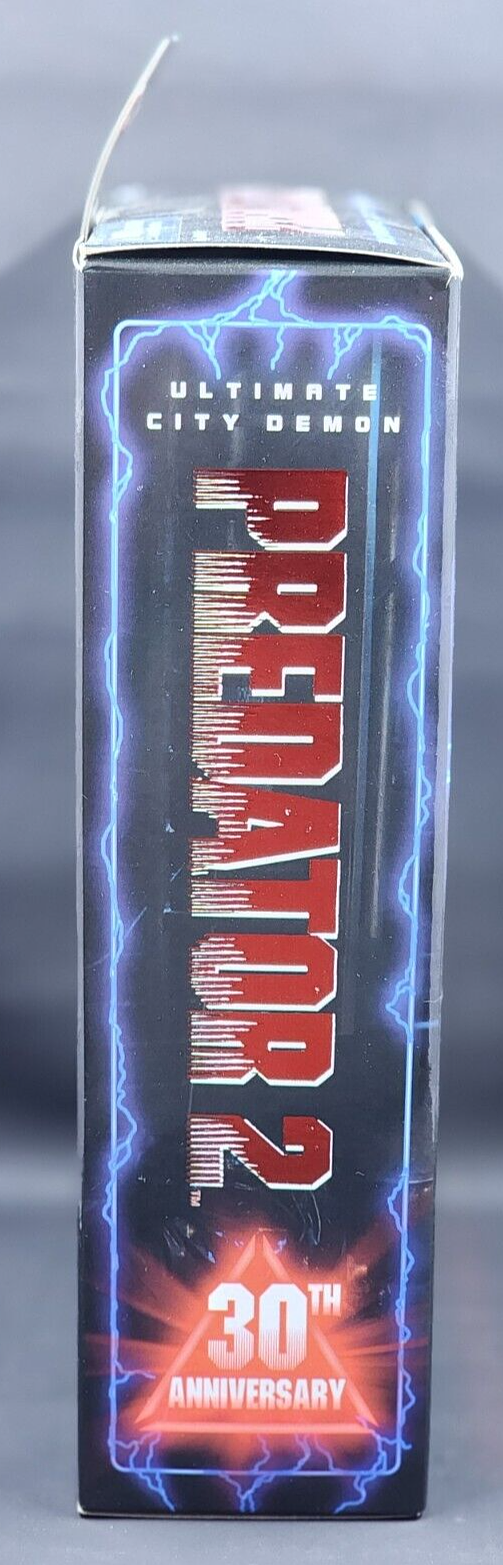 The NECA Predator 2 Ultimate City Demon 2020 Comic Con Exclusive Action Figure is a 1:12 scale plastic figure based on the Predator character from the franchise. Manufactured in 2020, this action figure features flashing lights and LEDs that light up (battery is not replaceable and has run out of charge with this product), including box lights. The model is part of the Ultimate City Demon line and was an exclusive release at the San Diego Comic Con. Suitable for ages 4 and up, this highly detailed collectible is a must-have for fans of the Predator series and action figure enthusiasts.