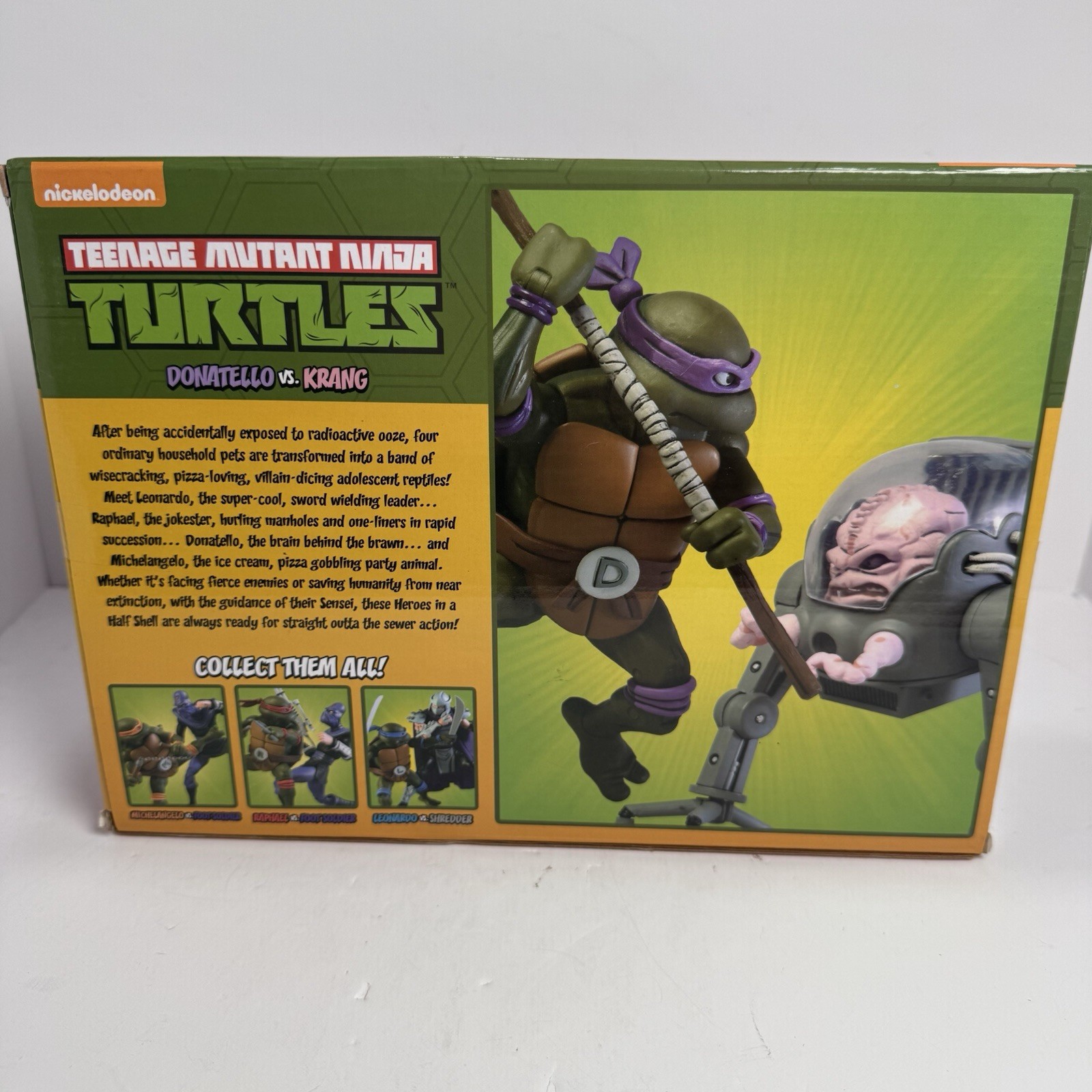 This NECA Teenage Mutant Ninja Turtles Donatello vs. Krang 2-Pack captures two fan-favorite characters from the classic 1987 cartoon. Donatello includes his bo staff and tech accessories, while Krang comes with his iconic walker robot body and additional parts. Display-friendly collector packaging makes this set perfect for TMNT fans and figure collectors. Includes: • Donatello figure • Krang with walker body • Bo staff, communicator, and tech accessories • Collector box with cartoon artwork Great addition for NECA TMNT collectors or display setups.