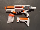 Tested and works, original stock and magazine, with an extra 6 round magazine. Get ready to join the First Order with this NERF Star Wars The Force Awakens First Order Storm Trooper Blaster Gun. This iconic blaster is perfect for any Star Wars fan who loves outdoor playtime. The blaster is designed to look like the real thing and features a sleek black design with a white helmet logo. This NERF blaster is made for dart gun enthusiasts who are looking for a fun and exciting experience. The blaster is perfect for outdoor playtime and is ideal for groups of friends who love to engage in battles. Get your hands on this amazing blaster today and join the First Order!