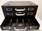 Very rare to find the Black Neumade cabinets in such good shape and a great price on eBay or elsewhere. The price is for one (Black) NEUMADE 5-Drawer Stackable Storage File Cabinet with 5 rows in each. No rust and no tape or tape residue on the cabinets. The cabinet can stand alone or you can stack them. (indentations on the tops for the bottom to fit into.) Cabinet's are very clean and from a smoke free home. Each Cabinet Measures 15.5" wide, 12-1/4" deep, and 13" high. Weight is around 30 pounds. Individual rows are 2-1/16" to 2-1/8" wide. Thank you.