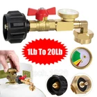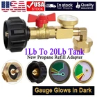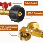 Features: 100% brand new and high-quality made. 90-degree elbow design makes the adapter easier for gas to flow to the small cylinders. Simply attach to your large tank and your 16oz tanks for refilling in within a minute. Features with a propane ON-Off control valve, which prevents gas leaks when connecting gas cylinders. You can easily control the refilling process safely. Corrosion-resistant solid brass provides a better sealing effect. the built-in safety features effectively prevent the danger of overfilling the gas cylinder. You can quickly check the remaining gas of your large tank to avoid the inconvenience caused by insufficient gas during the filling process. Specification: Material: Solid Brass Inlet: QCC-1 Outlet: 1"-20 Female Throwaway Cylinder Thread Safety Switch: On-Off Control Valve Friendly Reminder: Because gas is highly flammable, it can only be used outdoor and stay away from flames and sparks. Make sure the valve is closed before refilling for safety. Put the empty 1LB cylinders in a freezer for several hours for quicker refills. Instruction: Step 1: Turn off the valves, attach the adapter's QCC-1 connection to the tank valve and tighten it securely. Then put your 5-40lb propane tank upside down. Step 2: Connect the 1"-20 Female Throwaway Cylinder Thread to the empty 16oz propane fuel cylinder. Step 3: Open the 5-40 propane tank cylinder valve. Step 4: Then turn on on-off control valve and let the gas flow until the tank is full. Package Includes: 1 x Propane Refill Adapter