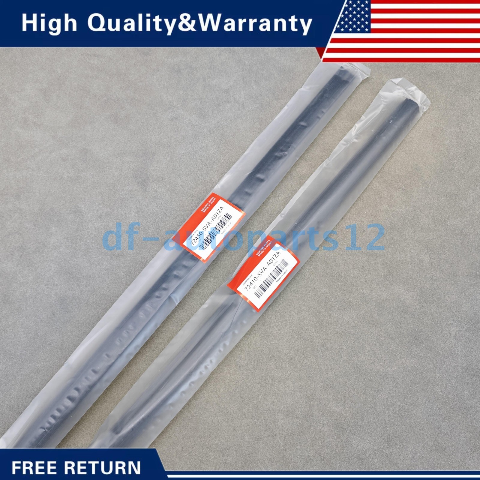 Product Description Product Description ● Condition: NEW ● Manufacture Part Number: 72450-SVA-A01ZA, 72410-SVA-A01ZA ● Compatible with: For Honda Civic Coupe 2Door 06-11. Package included: 2Pcs Door Belt Moldings Window Belt Weatherstrip Notice : 1. If you are not completely satisfied with your purchase, you may return it for a refund or exchange it for a replacement. We only require that you contact us within 14 days of receiving your item and return it in the same condition it was received. 2.Please check the model before your purchase and compare the position of the screw hole In case of wrong purchase. 3.If you have any questions, please contact us by email and we will solve them for you. Payment Shipping Contact Us FeedBack Return We support multiple payment methods You can use Paypal or a credit card with VISA or MasterCard logo or apple pay or Googel pay. 1.We generally ship with usps and Fedex. 2.Your item will be carefully packed and shipped within 3 business day after payment received. 3. Package transit time: please expect 3-7 business days within US. Buyer need express mail service please contact us before placing the order. International transportation services are temporarily not available. If you're looking to buy in bulk or looking for a long term part supplier, please contact me directly. We will provide you the best products and service. Put off your doubts and fears and thusrest assured purchase. We offer 100% Customer Satisfaction , if you have any questions , please let us know and we will do our best to rectify the situation . We fully stand behind with all the items that we are selling ! When you receive your item , please leave positive feedback , we rely on you for our good name. 1. Please leave positive feedback to us if you are satisfied with the goods. 2. If you are not satisfied, please contact us immediately and we will try our best to give you a perfect answer at the first time. 3. Please feel free to contact us via the ebay messages system, if you have any question, we will assist you ASAP. 1. Please read the item description and check the pictures carefully before bidding. Return or refund is available only if item DOA or there's error in item description causing the item not fitting your need. In such cases, seller pays for all related shipping cost if any. 2.Returns are also acceptable if buyer purchased this by mistake and item still in good condition for reselling. Buyer is responsible for all related shipping cost. Payment We support multiple payment methods You can use Paypal or a credit card with VISA or MasterCard logo or apple pay or Googel pay. Shipping 1.We generally ship with usps and Fedex. 2.Your item will be carefully packed and shipped within 3 business day after payment received. 3. Package transit time: please expect 3-7 business days within US. Buyer need express mail service please contact us before placing the order. International transportation services are temporarily not available. Contact Us If you're looking to buy in bulk or looking for a long term part supplier, please contact me directly. We will provide you the best products and service. Put off your doubts and fears and thusrest assured purchase. We offer 100% Customer Satisfaction , if you have any questions , please let us know and we will do our best to rectify the situation . We fully stand behind with all the items that we are selling ! When you receive your item , please leave positive feedback , we rely on you for our good name. FeedBack 1. Please leave positive feedback to us if you are satisfied with the goods. 2. If you are not satisfied, please contact us immediately and we will try our best to give you a perfect answer at the first time. 3. Please feel free to contact us via the ebay messages system, if you have any question, we will assist you ASAP. Return 1. Please read the item description and check the pictures carefully before bidding. Return or refund is available only if item DOA or there's error in item description causing the item not fitting your need. In such cases, seller pays for all related shipping cost if any. 2.Returns are also acceptable if buyer purchased this by mistake and item still in good condition for reselling. Buyer is responsible for all related shipping cost. OEM 3pcs Car Hood Support Prop Rod Holder Clip For Honda Accord Odyssey Prelude 7.22 USD Free shipping OEM 50x Fender Liner Retainer Fastener Clips 91512-SX0-003 For Honda New 7.67 USD Free shipping OEM! GAS CAP 310103L600 For 06-17 Hyundai Sonata Elantra Azera Santa Fe Veloster 12.66 USD Free shipping OEM! Solenoid Spool Valve Gasket Kit for VTEC K-series Honda CRV Accord Element 7.99 USD Free shipping OEM! New Gas Fuel Cap For Kia 31010-3L600U US 7.19 USD Free shipping OEM PCV Valve For 13-21 Honda Accord Odyssey Pilot Acura MDX 17130-RCA-A02 USA 7.56 USD Free shipping