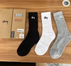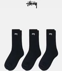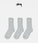3 Pair STUUSY Stock Crew Socks White/Black/Gray Size 8-13