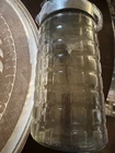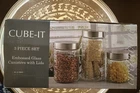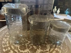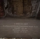 Keep your kitchen organized and stylish with this 3-piece Circleware Embossed Glass Canister Set. The set includes three canisters of multiple sizes with a cubed pattern and a modern style. The clear and silver color combination adds a touch of elegance to your kitchen. Small holds 28 ounces Medium holds 42.3 ounces Large holds 57.5 ounces The canisters are made of high-quality glass and stainless steel, making them airtight, easy to clean, dishwasher safe, and multipurpose. The screw-on lids make it easy to access your food items without any hassle. This canister set is perfect for storing dry goods like sugar, flour, and coffee, or for keeping your kitchen or bathroom essentials organized.