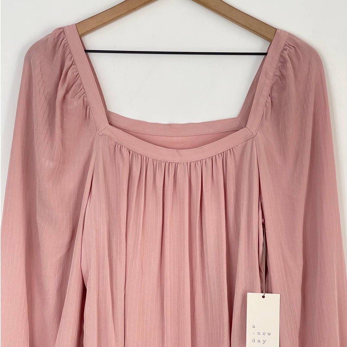 A New Day Size Small Peasant Style Blouse in Pink In a blush pink color, this peasant style top by a new day is the perfect casual piece to add to your wardrobe. Size S New with Tags, NWT Approximate flat lay measurements Pit to pit 18in Length 25in Sleeve 24in