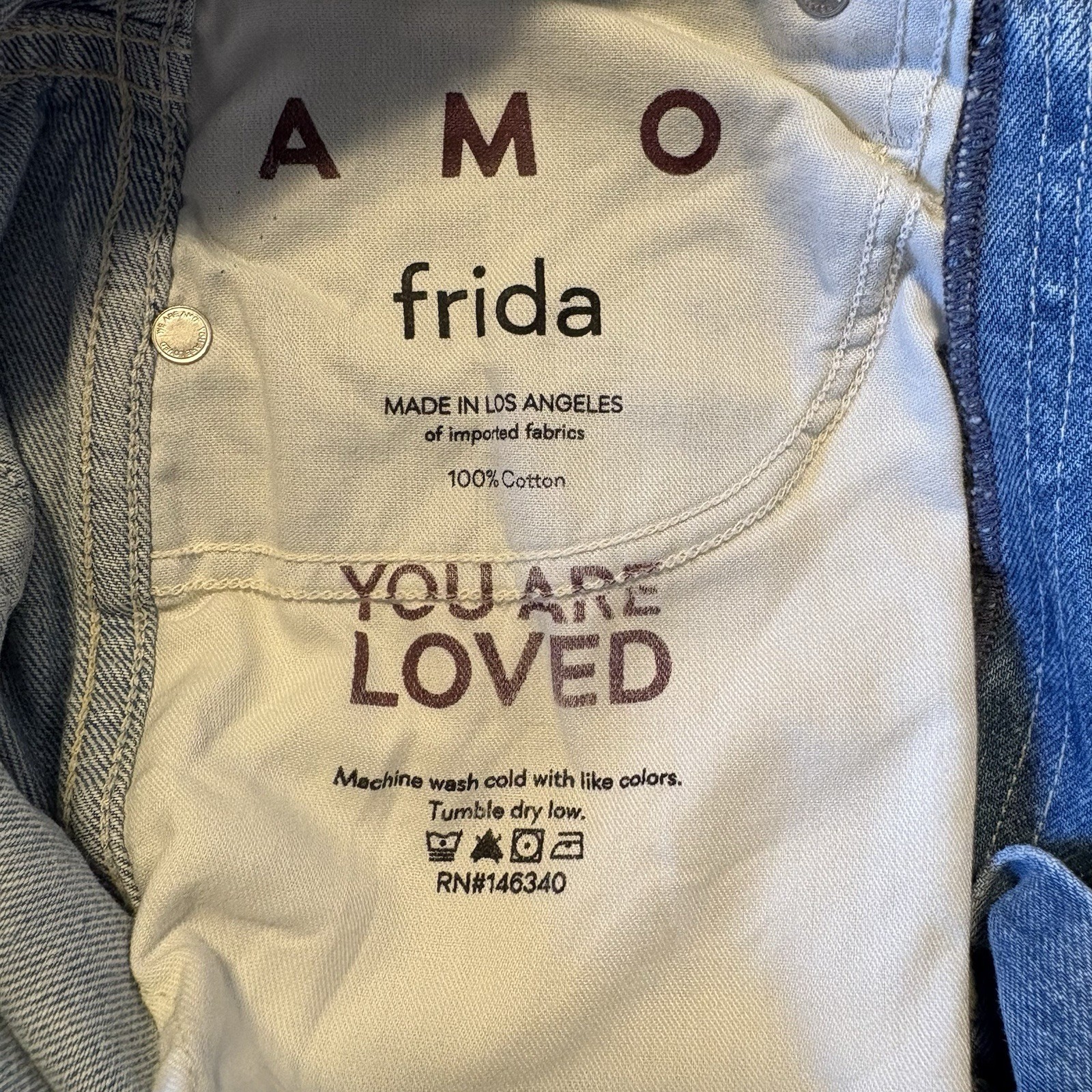NWT $300 Make a statement in AMO's newest style, the FRIDA. High-rise with a wide leg, it features a full inseam, zip fly, and distressing. - Inseam = 33.5” - Front Rise = 12” Color/option: “Honey” 100% Organic Cotton - Machine wash cold, and either hang dry or tumble dry low heat Made with love in Los Angeles