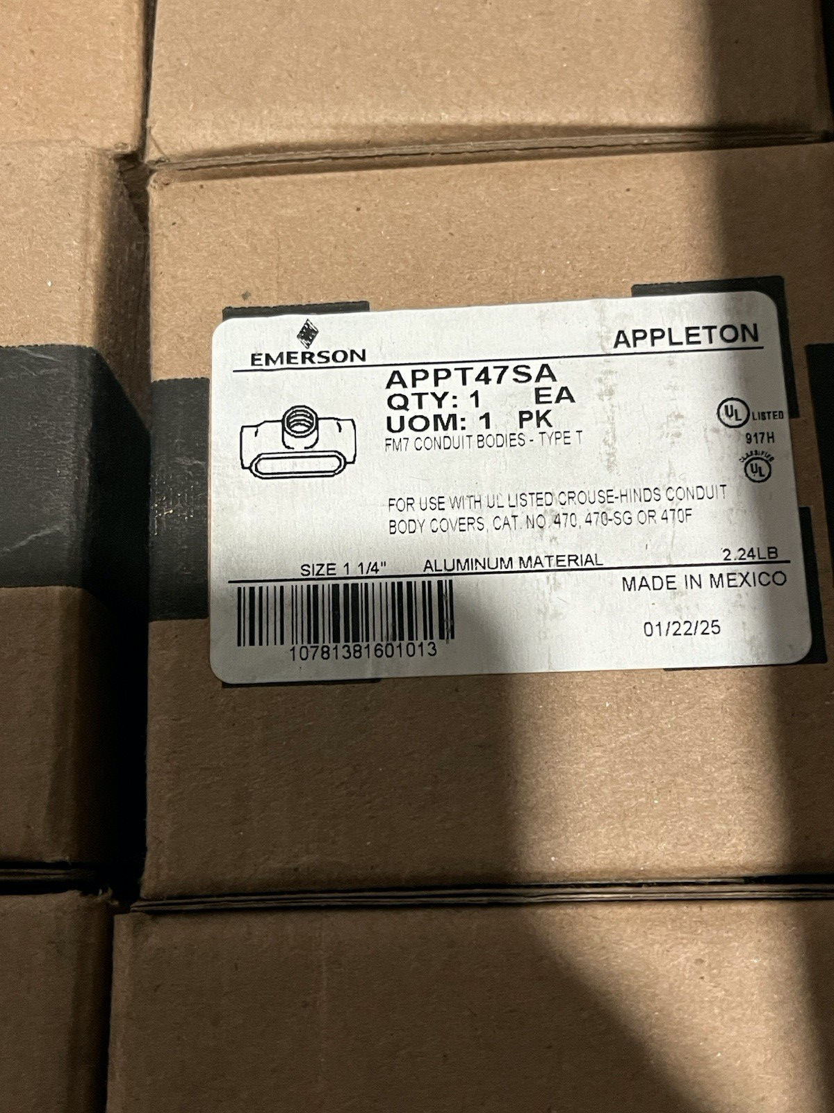 SELLING NEW BOX OF 10 APPLETON T47SA 1 1/4" EXPLOSION PROOF FM7 ALUMINUM CONDUIT T BODYS TYPE T SOLD AS IS