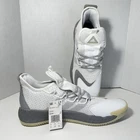 The product is a pair of Adidas Pro Boost Low basketball shoes in a color combination of white and gray, designed for men in size 16. These sneakers feature a lace-up closure, a rubber outsole, and maximum cushioning for comfort during athletic activities like basketball. The shoes are part of the Adidas Pro Boost Low product line, with a low-top silhouette and a colorblock pattern accented with the Adidas logo. Made with a blended fabric upper and synthetic lining, these athletic shoes are suitable for activewear and casual occasions in various seasons such as summer, fall, and spring.