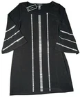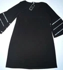 Brand NEW With Tags Alfani Noveau Rossa Deep Black With Silver Metal Accents Stretch Bell Sleeve Dress ~ Women's Size S - Small. Measures: 18.5" flat across the front from underarm to underarm unstretched and 33.5" from shoulder to bottom hem.