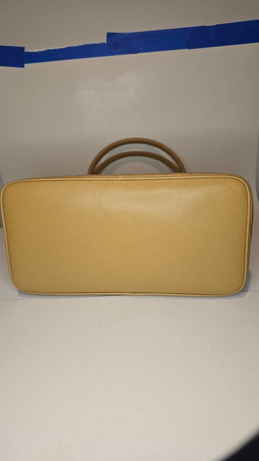 The NEW Authentic vintage (2000-2002) Chanel Caviar Medallion Tote in Beige is a stylish and versatile handbag designed for women. This medium-sized tote features a square shape with a zip closure and a top handle strap in beige color. Made from leather with gold-plated hardware accents, this vintage Chanel bag is perfect for casual, formal, or business occasions. The iconic Chanel logo and zipper pull add a touch of luxury, making it a designer statement piece. Made in Italy, this tote also includes inner pockets for organization and a bag charm for added flair. BRAND NEW with original dust bag, Chanel certification card. Smoke free home.