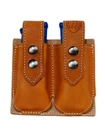 NEW Barsony Tan Leather Double Mag Pouch for Kel-Tec Taurus 380 & Ultra Compact 9mm Made in the USA by Barsony Holsters and Belts FITS: KEL-TEC P11 PF9 P40, Taurus Slim 708 709 740, Sccy CPX-1 CPX2 This double magazine pouch is made to fit either single stack OR double stack magazines. PREMIUM SADDLE TAN COWHIDE LEATHER DOUBLE MAGAZINE POUC H The MAGAZINE POUCH has a SNAP-Retention strap. Precision stitching, made from premium cowhide Lightweight (only 5oz) and is made in Beaverton, Oregon USA . Made from U.S. double shoulder 7oz. weight cowhide. It will accept belts up to 1.75" width. Add a map to your own listings. FREE Trial !