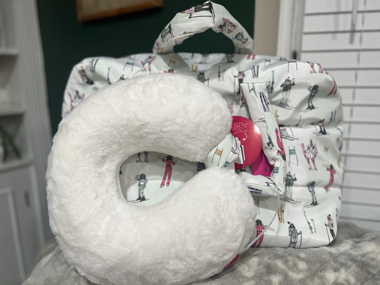This is a stylish Betsey Johnson Ski Snowboard Weekender Duffle Bag designed for women. The bag is large in size and features a multicolor design with a white exterior color, perfect for carrying essentials for a ski trip. The duffle bag is made of faux leather, adding a touch of luxury to the functional ski-themed accessory. Ideal for fashion-forward individuals looking to make a statement while hitting the slopes or traveling in style.