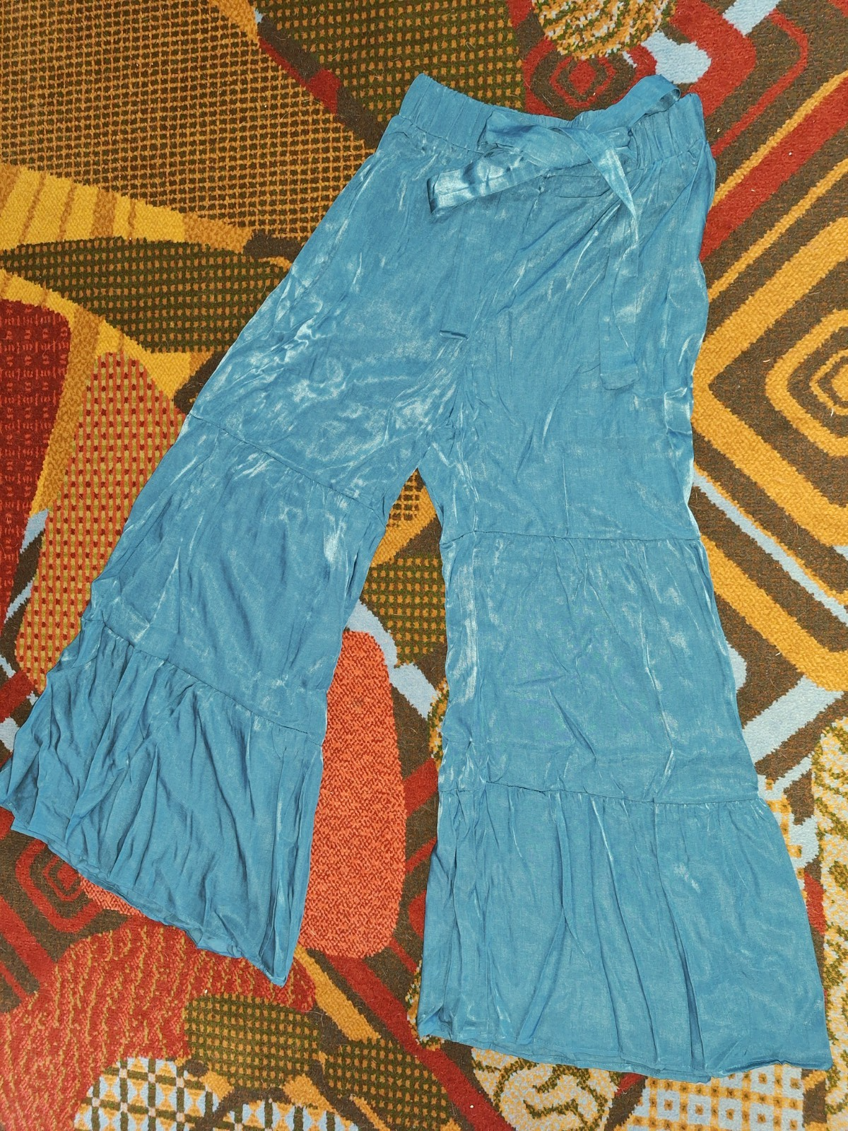 These are SOO beautiful...We sell many of them, We only have a few Left EXACTLY as pictured. 3/4 elastic waist band, Wide bell bottom Fit. Size M, 34-36"around Color is truly amazing! LOTS OF COMPLIMENTS wearing these! Please Look! Happy to bundle & Save on Shipping! ASK QUESTIONS BEFORE YOUR PURCHASE,PLEASE!!<------ We Do NOT accept returns!!! Don't fault us for how something looked, fit or felt on you, Need answers, We will do our best so ASK before purchase, See Photos, Use Zoom All items from smoke/pet free household We Ship Immediately too!!! Need More Pics? Just ask! Dont go without Browsing ALL Our Listings
