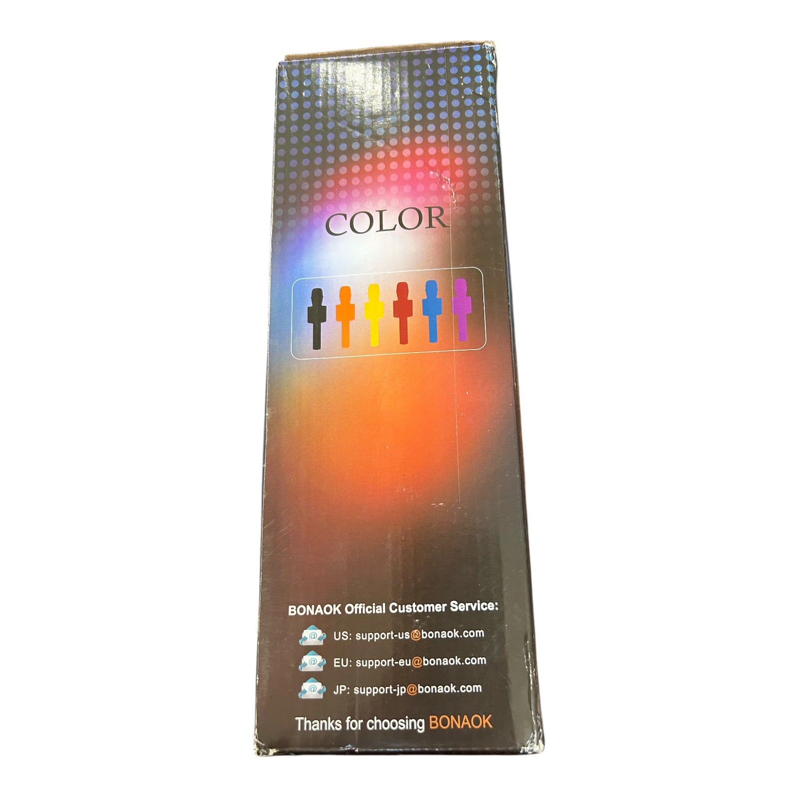 The NEW Bonaok Wireless Bluetooth Karaoke Microphone is a portable handheld speaker in blue. It features wireless Bluetooth technology, a Micro SD card slot, built-in headphone jack, and USB charging. This karaoke microphone is suitable for karaoke entertainment and has a transducer type suitable for singing.