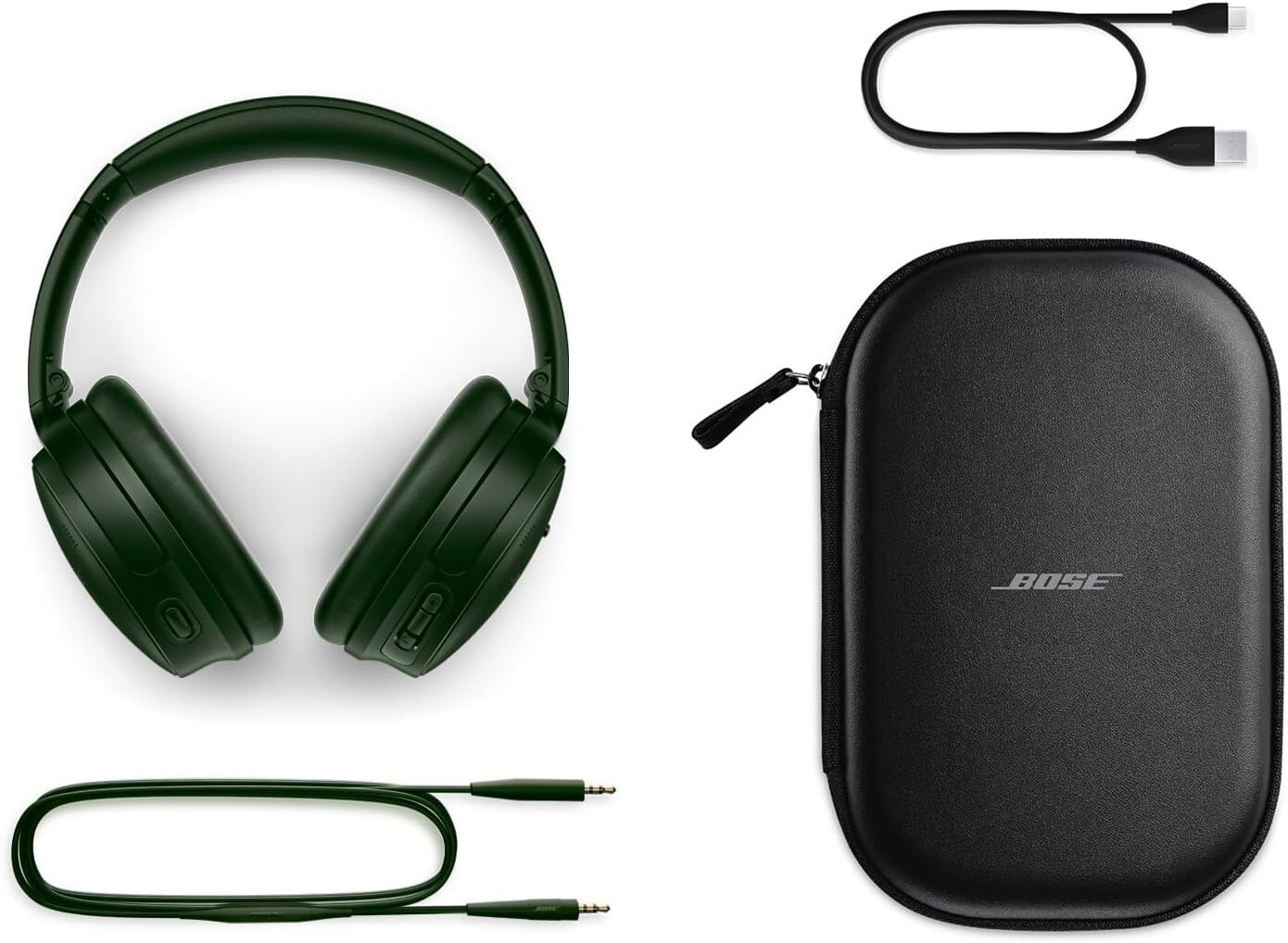 Take charge of your music and stride along to the beat. High-fidelity audio and legendary noise cancellation work their magic by sealing you in, eliminating distractions, and letting you dive deep into your own rhythm. Toggle between Quiet and Aware Modes, or create a Custom Mode and adjust outside sound to the moment. The design is iconic and the comfort lasting, while an optional audio cable with an in-line microphone plugs you into sound as bold as you, even without a Bluetooth® connection. Meet your newest statement piece Available in Black, White Smoke, and an all-new limited-edition Cypress Green color option, QC headphones connect to bold sound with a bold look. Iconic, comfy design. Plush earcup cushions softly hug your ears, while a comfortable yet secure band works to keep the headphones comfortable and in place. Quiet Mode Seal yourself in with full, legendary noise cancellation so you can block it all but the beat. Aware Mode Need to pay attention? Get full transparency to hear your surroundings, or engage in a conversation. Custom Modes Adjust your noise cancellation as you see fit, add Wind Block to tune out breezy environments, and revisit your custom noise cancelling setting at any time. Own the beat. Drop the bass Adjustable EQ allows you to crank the bass, tweak the treble, and balance the mid-range to get the sound that best suits you Plug into the sound These over-ear headphones bring an optional audio cable with an in-line microphone to plug you into sound as bold as you, even without a Bluetooth® connection. Keep your marathon playlists playing with up to 24 hours* of battery life on a single charge using a USB-C®. A quick, 15-minute boost gives your Bluetooth headphones up to 2.5 hours of play time.** Specs What’s in the box Bose QuietComfort Headphones Carry Case 3.5 mm to 2.5 mm audio cable USB-C® (A to C) cable (12") Safety Sheet Headphone Fit: Around Ear Circumaural Headband: On Head Cushions: Removable Cushion Microphones: Built-in Microphone Noise Cancelling: Yes Noise Control Type: Active Noise Cancelling Audio cable included: Yes Case: Carry, Storage Headphone: 7.68" H x 6.18" W x 3.15" D (0.52 lb) Product Material: Metal, Plastic, Leather (Protein) Product Case Material: Leather (Hard) Ear Cushion Material: Protein Leather Rechargeable: Yes Battery Life: 24 hours Battery Charge Time: 2.5 hours Charging Accessory included: Yes Charging Interface(s): USB Wireless Connectivity: Bluetooth Bluetooth Version: 5.1 Bose Music App Our Take A piece of functional art, the Bose QuietComfort Headphones are highly recommended by the team here at ThrillingAudio.com. Offering amazing noise cancelation combined with high-fidelity audio, these headphones offer the comfort and performance you've been waiting for. Order today and experience for yourself. For nearly three decades, Thrilling Audio has been providing top-quality headphones, speakers, and more to customers throughout the United States. With experience in the intricacies of both the products we sell and the online sales process, you can trust Thrilling Audio to provide you with the audio products you want. Fast. FREE 2-Day Shipping on all orders over $99.95 Expert, United States-based support Focused on customer service and satisfaction since 1993 Authorized Bose online dealer