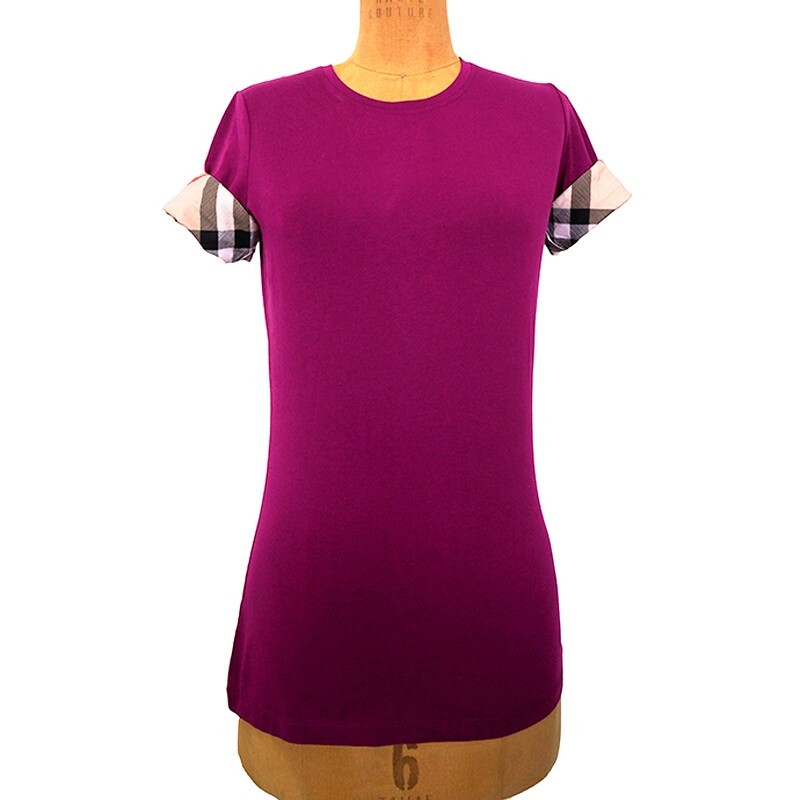 HTML 5 Template NEW $390 BURBERRY Magenta Pink Logo Nova Check Plaid Rolled Sleeves T-Shirt Top Size(s) Small, Chest: 34", Length: about 25" Description New with tag. Purchased from Burberry. Retail $390. Photos are of the actual item. Retired style, no longer made. Authentic Burberry tee in a casual everyday style. A pretty magenta pink in cotton stretch. Short sleeves. Sleeves can be flipped/folded to show the logo nova check plaid trim. Rounded neck. Slim fit. Style Ancholme. 93% cotton, 7% elastane. Made in China. Great little t-shirt that can be worn with jeans to shorts. * All items are clean and from a non-smoking home. * ** Payment is expected within 5 days. Please read measurement carefully as sizes vary with designers, please ask for additional measurements if you are unsure. No refunds but exchange is permitted. Items are described as accurately as possible. In cases where refunds are sent the original shipping will not be refunded. All items are AUTHENTIC. Please ask all questions before purchasing. Thank you! **
