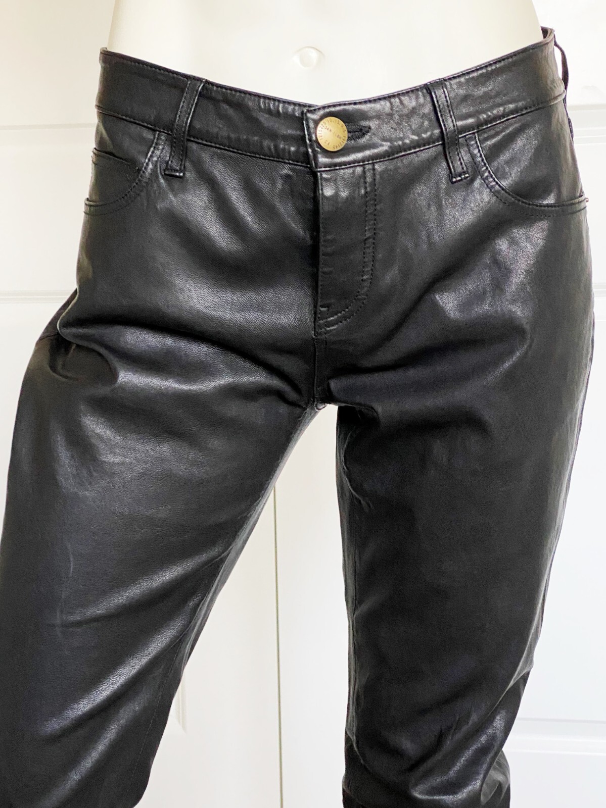 NEW CURRENT ELLIOT BLACK 100% LAMB LEATHER STRAIGHT LEG PANTS SIZE: 29/30 BLACK 100% GENUINE LAMB LEATHER 4-BUTTON CLOSURE 5-POCKET CONSTRUCTION MID-RISE STRAIGHT LEG IMPORTED FLAT MEASUREMENTS (APPROX.): LENGTH: 43 INCHES INSEAM: 33 INCHES WAIST: 31 INCHES ACROSS RISE TO WAISTBAND: 9 INCHES HIP: 20 INCHES ACROSS THIGH: 11 INCHES ACROSS LEG OPENING: 7 INCHES ACROSS AWESOME PANTS AND EXCELLENT PRICE WHEN COMPARED AT $995.00 RETAIL! THANK YOU FOR VISITING MY SITE OR EBAY STORE!