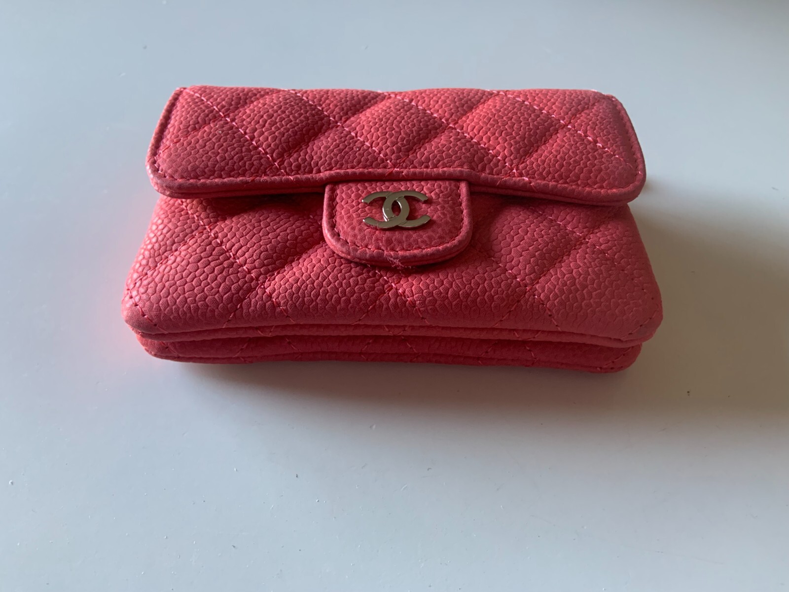 Product Features: This is an CHANEL Caviar Quilted Flap Card Holder Wallet in PINK. This simple cardholder is crafted of diamond-quilted caviar leather in PINK. It features a polished light gold Chanel CC logo on the front and opens to a matching fabric interior. Dimensions: approx 4.75 " (L) x 3.25" (H) x 1" (D) Notes: 100% Authentic! Stored in a temperature controlled, pet, and smoke free environment. Shipping: FREE expedited shipping (estimated 3-5 business days) by USPS Priority Mail w/ tracking within the U.S. International shipping provided through eBay's Global Shipping Program. Buyer will be responsible for international shipping costs and import taxes (if applicable). *Shipping carrier may change based on delivery time frame and/or price.* Returns: For any reason you do not like your purchase, return it for a full refund within 30-days of receiving the product. * must be in original condition received* . So buy with confidence as your satisfaction is my #1 priority! Payment: Due within 2-days after purchase. Item will ship as soon as payment is verified. The JIROMYHERO Group Promise: We are very proud to maintain the highest standards of service from our eBay customers. If you ever feel less than excellent service has been provided, please let us know by messaging us through any of our listings. Please let us know if you have any questions and thank you for looking. With that said, YOU are my HERO!