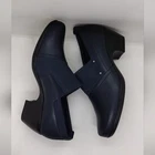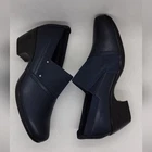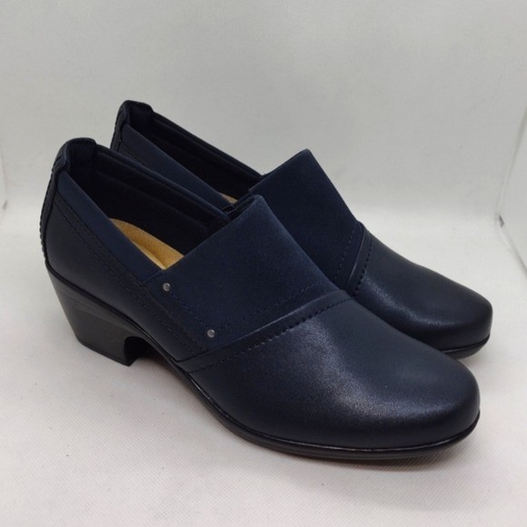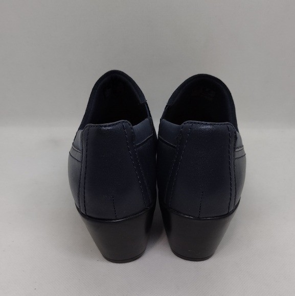 Elegant and versatile women's slip-on shoes in classic black. Perfect for any occasion. Features Navy blue Round toe Easy slip on Black heel Casual Comfy Retro 90s Y2K Leather NWOT SIZE 8 Measurements Heel Height: 2.25" Please check to be sure of fit Smoke Free Pets Free Please feel free to contact me for any questions or offer Bundle Discounts Offered Fast Shipping *5717-032-25*
