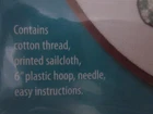 Includes: Cotton Thread Printed Sailcloth 6 Inch Plastic Hoop Needle Instructions PACKAGE HAS BEEN OPENED, BUT ALL PIECES ARE INTACT Smoke free, pet free environment 250128