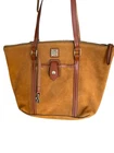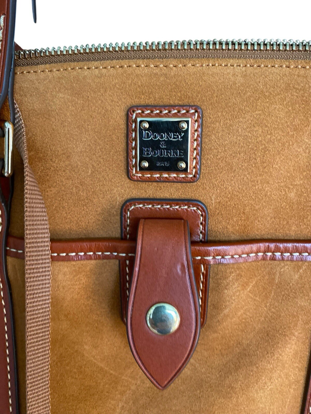 NEW Dooney & Bourke SuedeTote Features: Double handles, zip with snap closure, metal-plated logo, four feet, gold-tone hardware Red lined interior, front-wall zip pocket and slip pocket, two back-wall slip pockets. Measures approximately 10.5” x 13” x 5” with an 11-inch handle drop, weighs 1 lb 10 oz. Body/trim 100% leather, lining 100% cotton