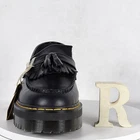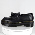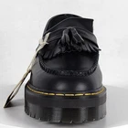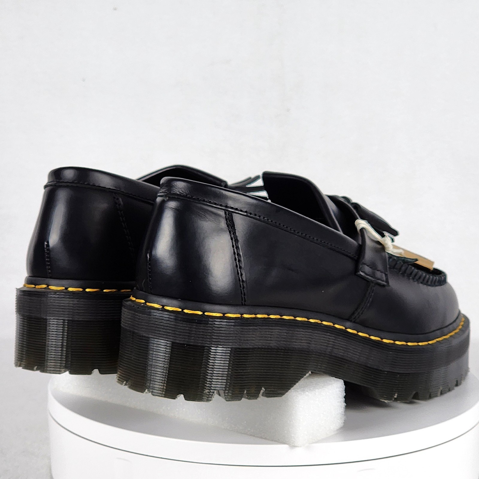 NEW Dr. Martens Adrian Quad Black Smooth Leather Platform Tassel Loafers Unisex; US Men 11 / Ladies 12; UK 10; EU 45 (Item #3988 - B78)