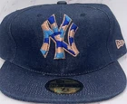 NEW ERA 59 FIFTY MLB NEW YORK YANKEES DENIM BLUE FITTED HAT SZ 7 5/8 Camo Logo