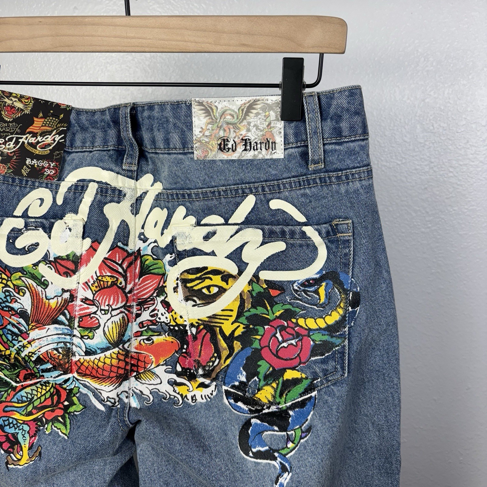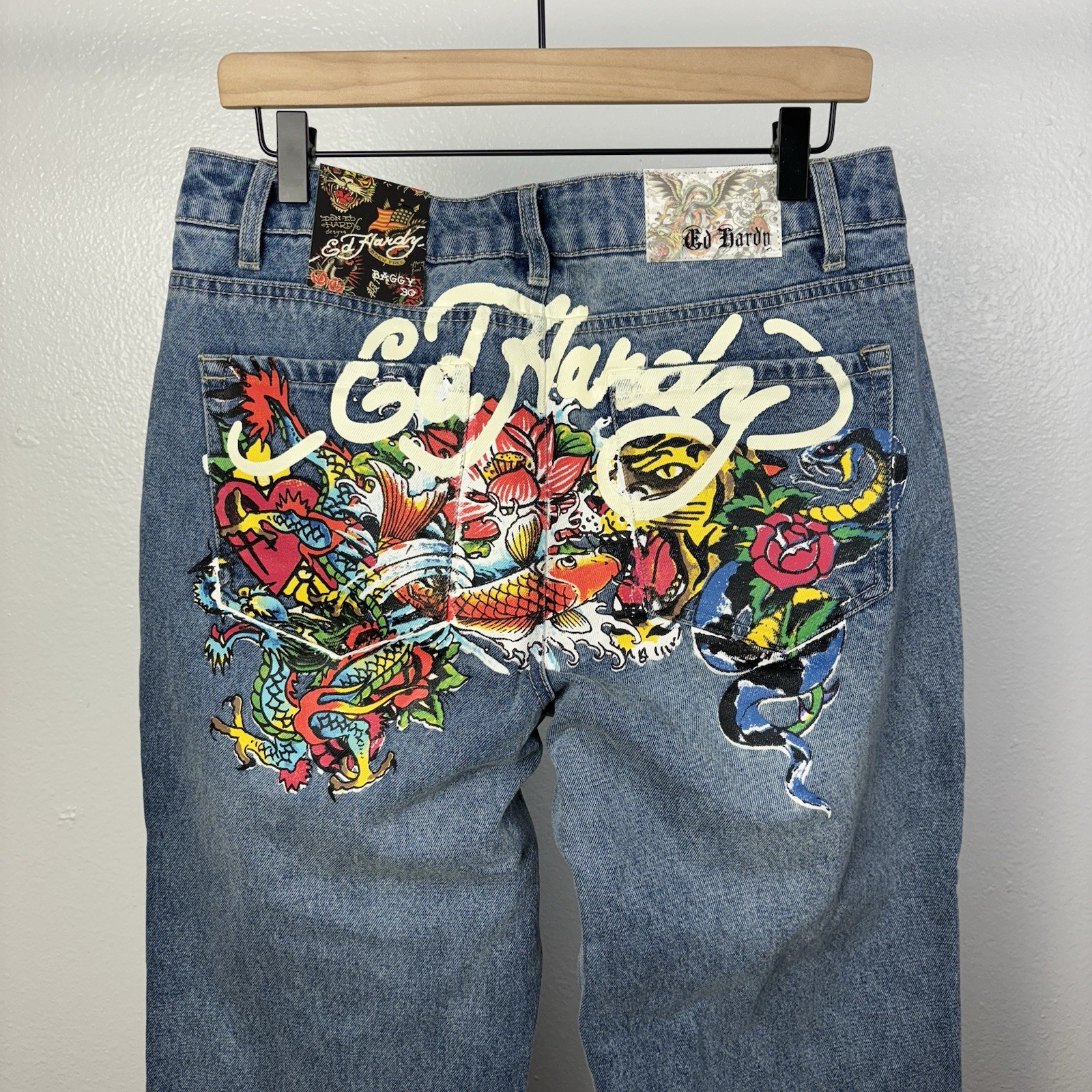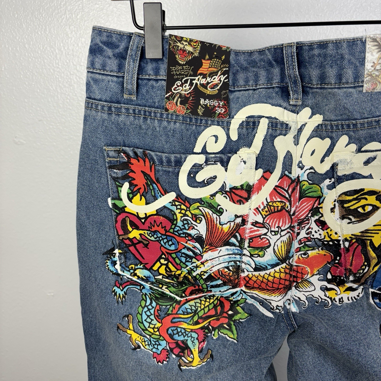 NEW Ed Hardy Mens Jeans 30 Y2K Koi Fish Baggy Wide Leg Denim Grunge Punk NWT